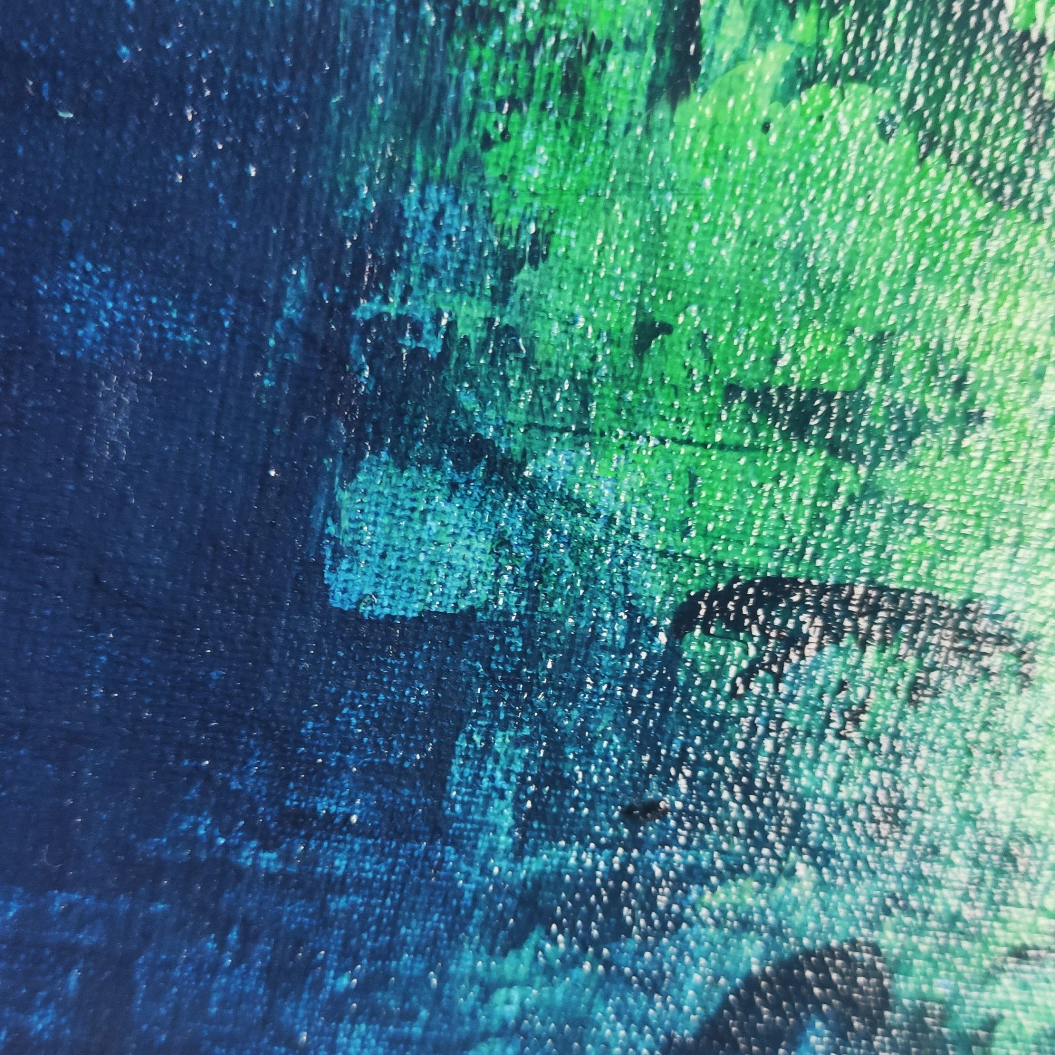 Obraz na płótnie naklejonym na płytę. Wykonany w technice własnej i akrylu. Zawiera elementy metaliczne, srebrny i grafitowy. Zabezpieczony werniksem z lekkim połyskiem. Na ostatnim zdjęciu obraz w trakcie malowania w pracowni.